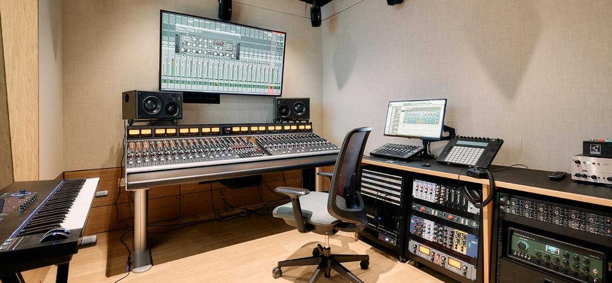 Beyond the immediate music studio and live room ecosystem, the Dante network also provides access to the 500-seat Sohmen Concert Hall and 120-capacity Black Box Performance Lab, in addition to the Ensemble Room, allowing live performances to be recorded through the Harrison console. “The concert hall is pin-drop quiet and has a beautiful, variable acoustic, and there's a multitude of concealed microphone ties and various other connectivity to connect back to the studios,” Hulme reports.